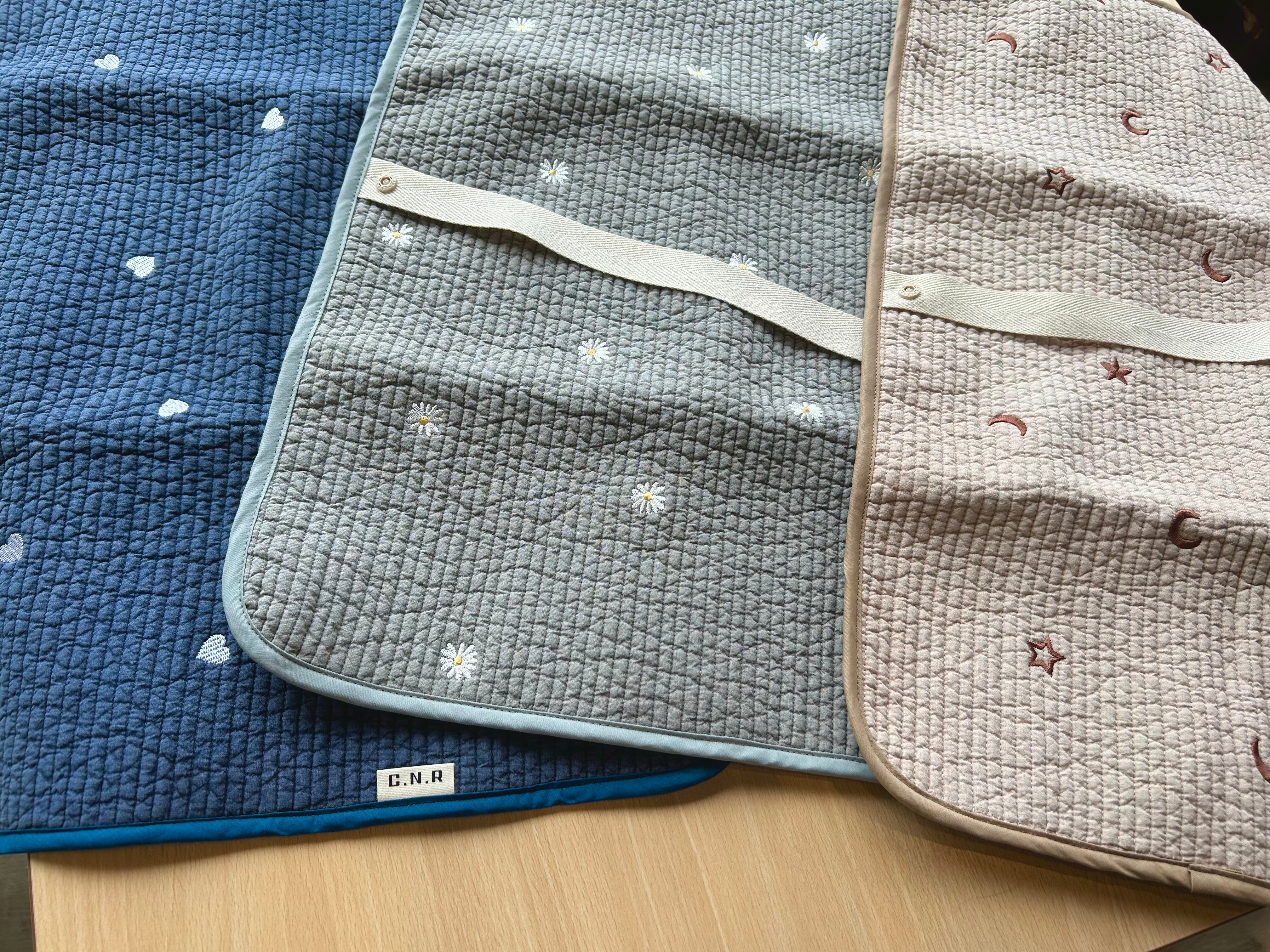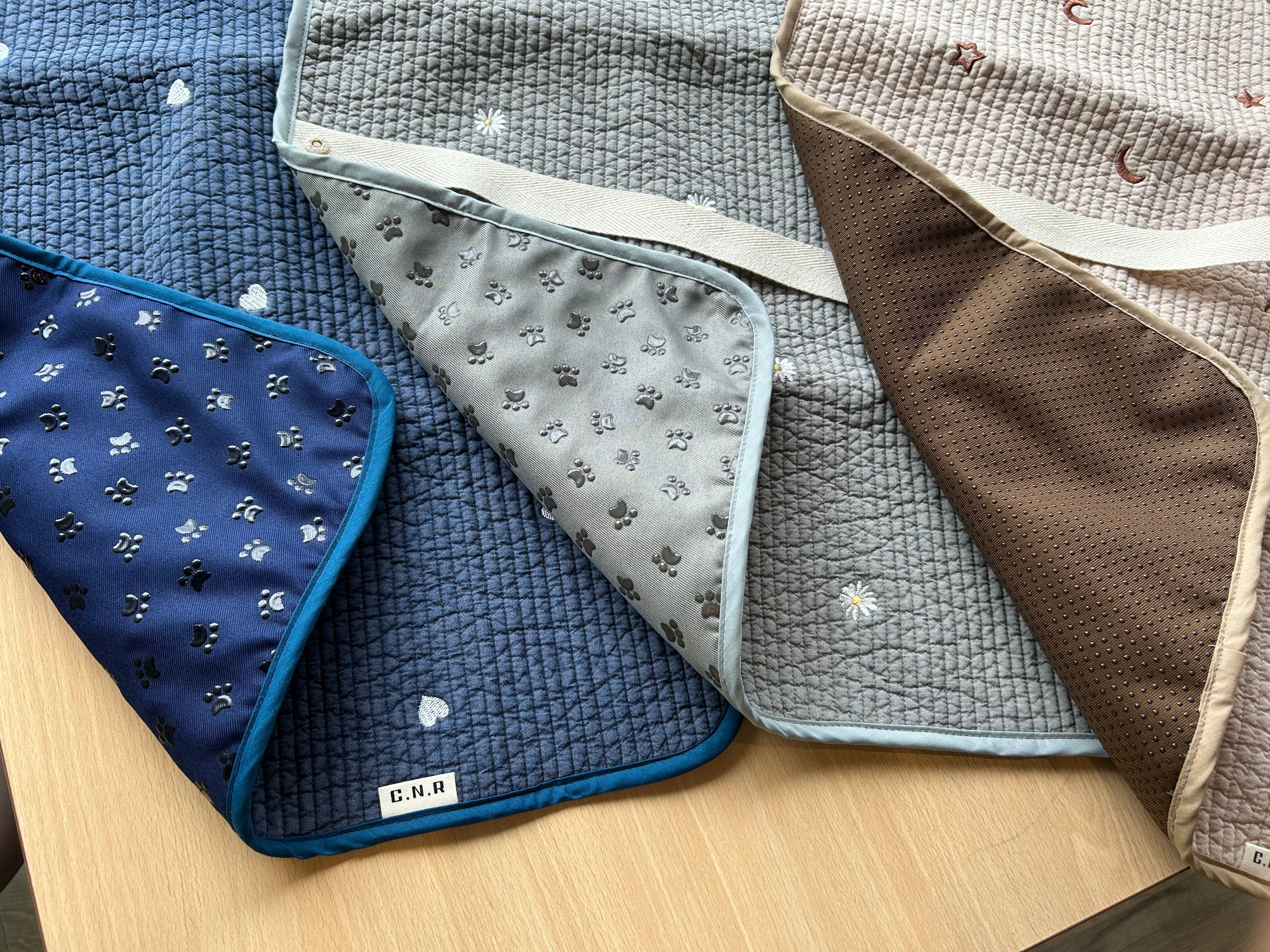 布団にも使われる韓国の伝統生地「ヌビ」を使用したカフェマット。